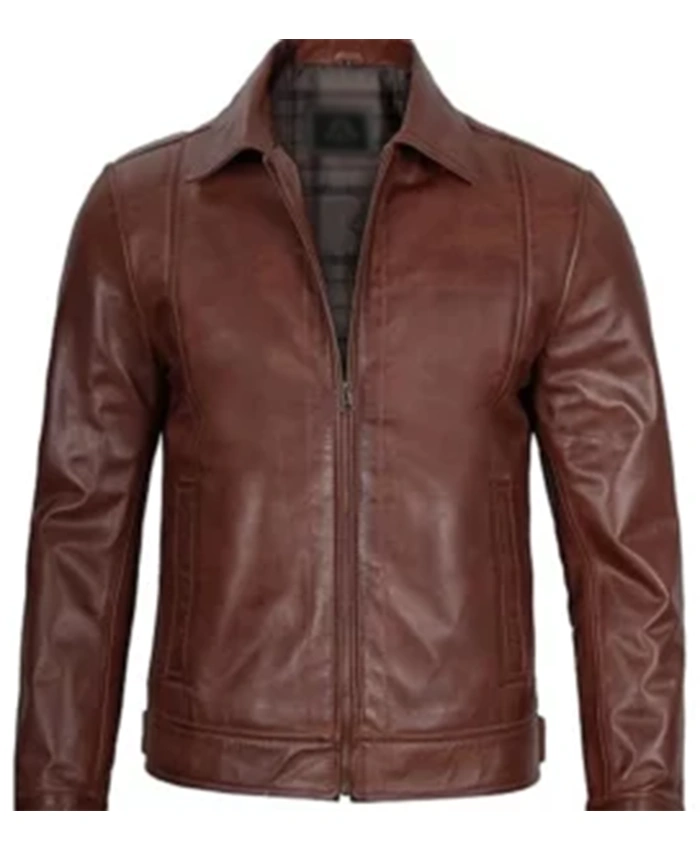 Order Cafe Racer Simple Brown Leather Jacket For Him And Her