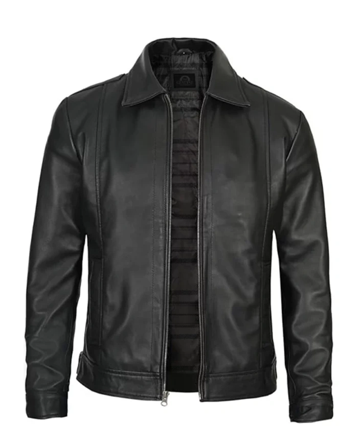 Order Simple Cafe Racer Black Leather Jacket For Men & Women
