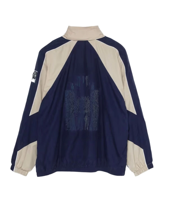 The retro finish and techwear influence of this jacket make it a standout piece. So if you think that the funky fashion and drama have been missing from your wardrobe. Then hop on this opportunity to make this jacket your everyday staple. With the mix of muted design and strong cuts. This Nike x CE Track Navy Blue And Tan Jacket is the perfect representation of minimal yet bold fashion. The sheen of polyester fabric and inner viscose lining give comfort and support to the one wearing it. However, with the hooded collar and zipper closure, you get a structured and polished look. The elastic cuffs on long sleeves add the timeless traditional value to this piece. And with multiple roomy pockets, this jacket is your guide to upgrading your boring outerwear collection and delving into functional fashion.