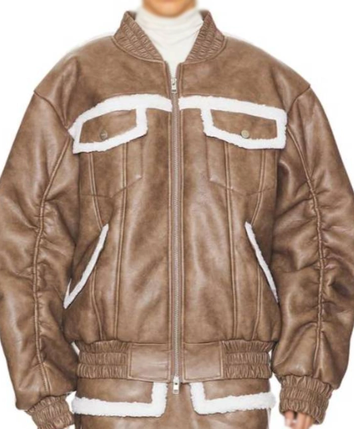 Get ready to upgrade your style with the Real Housewives of Salt Lake City S6 Meredith Marks Sherpa Leather Brown Bomber Jacket to explore fun and edgy designs.