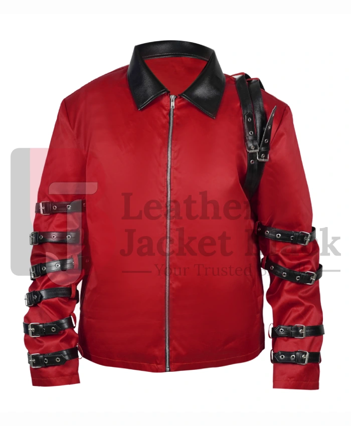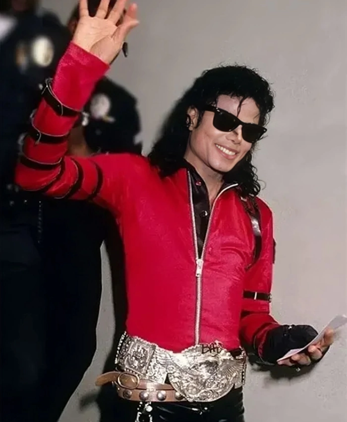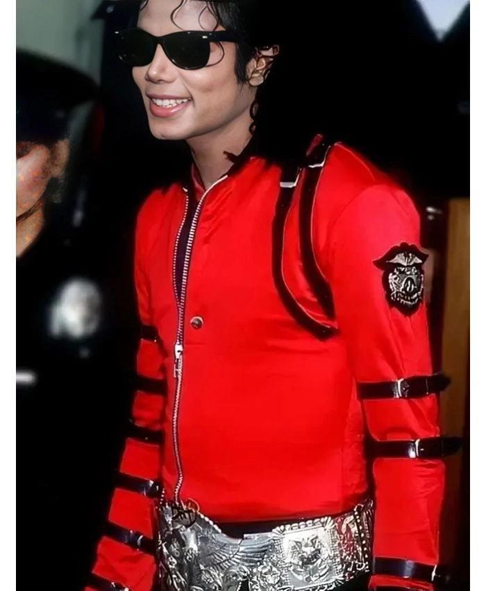 Bad World Tour 1987 Michael Jackson Red Satin Jacket – Multiple Belts on Sleeves