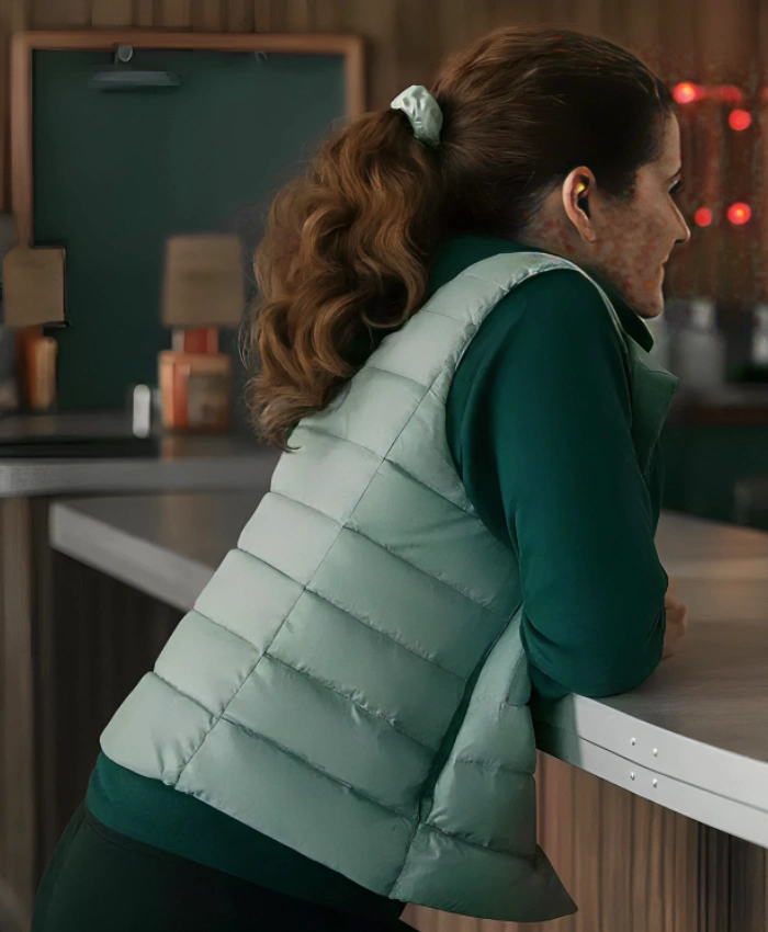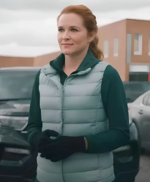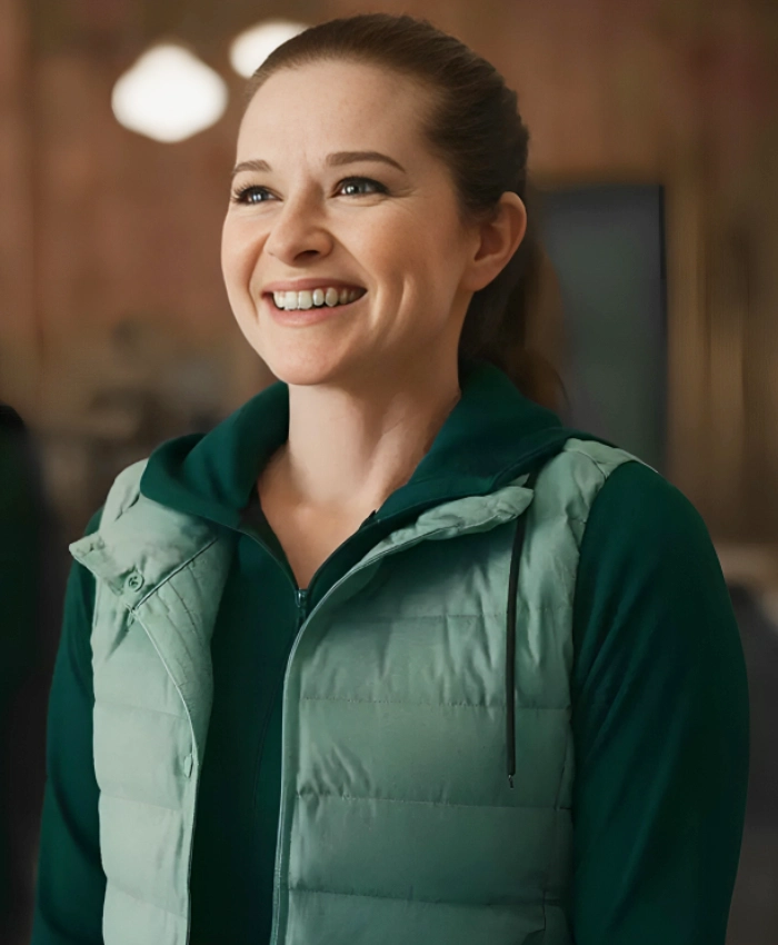 It’s a good idea to think about whether the outerwear will be breathable enough for mild weather. When choosing something that won’t feel heavy or restrictive during the changing seasons. Moreover, the Mistletoe Murders S02 Sarah Drew Vest from Leather Jacket Black. It solves that problem with a lightweight, functional design based on Sarah Drew’s character Emily Lane. In the TV show Mistletoe Murders S02. It keeps you warm where you need it and lets air flow through so you can wear it comfortably. Indeed, the Sarah Drew TV-Series Mistletoe Murders S02 Emily Lane Green Puffer Vest is made of high-quality parachute fabric.