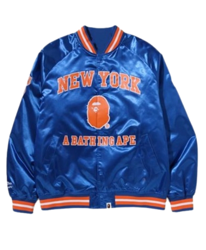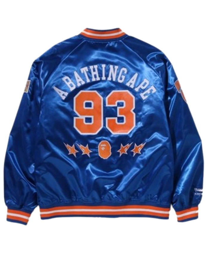 BAPE X M&N NBA New York Knicks Blue Satin Jacket