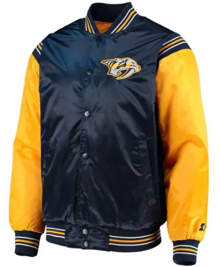 Nashville Predators Starter Blue and Yellow Satin Varsity Jacket