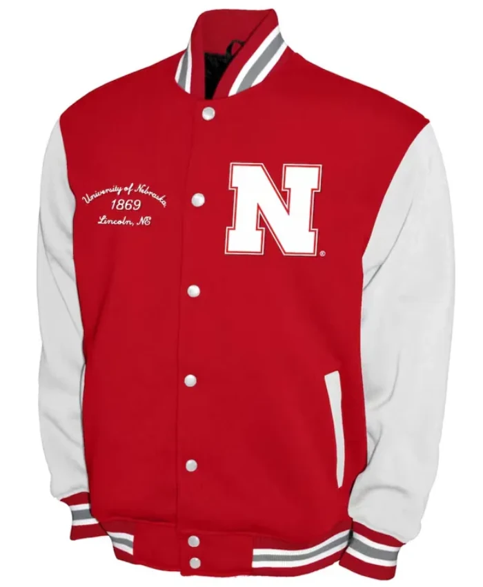 Nebraska Huskers Scarlet and White Varsity Jacket