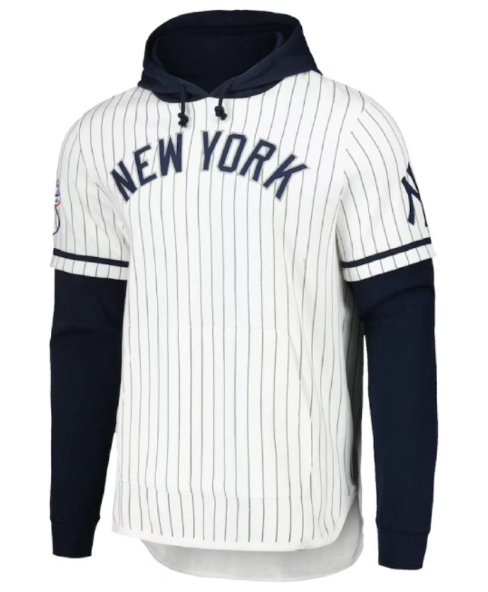 Men’s New York Yankees ’47 White Pinstripe Double-Header Pullover Hoodie