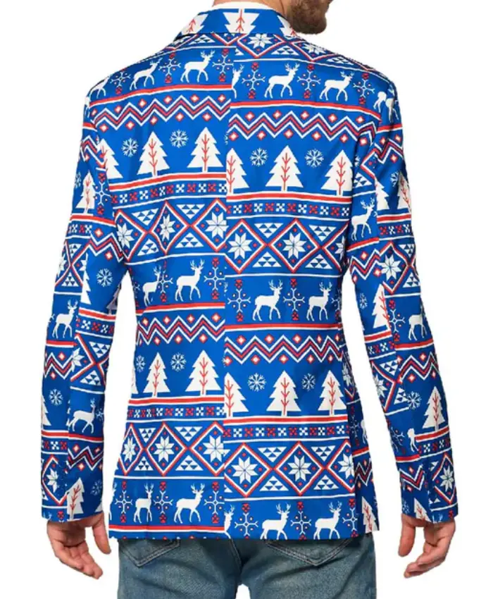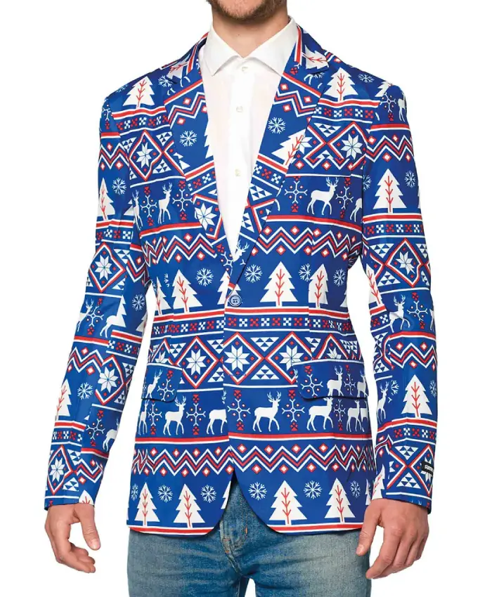 Christmas 2025 Blue Nordic Christmas Printed Blazer For Men and Women
