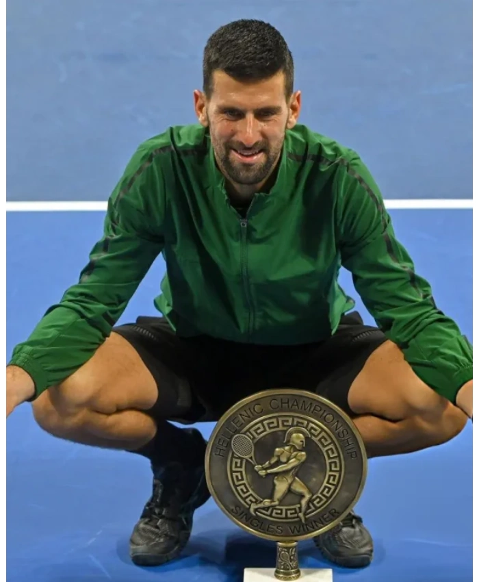 You want something that feels strong but is easy to do when you’re at the edge of a big day. A look that makes you feel good about yourself right away. The Hellenic Championship ATP Novak Djokovic Green Track Jacket is the best choice at that point. Moreover, it is also made of high-quality polyester fabric, it feels smooth and breathable. Making it great for active wear. The soft viscose lining keeps you comfortable for a long time. And the sleek zipper closure makes your outfit look more modern and useful.