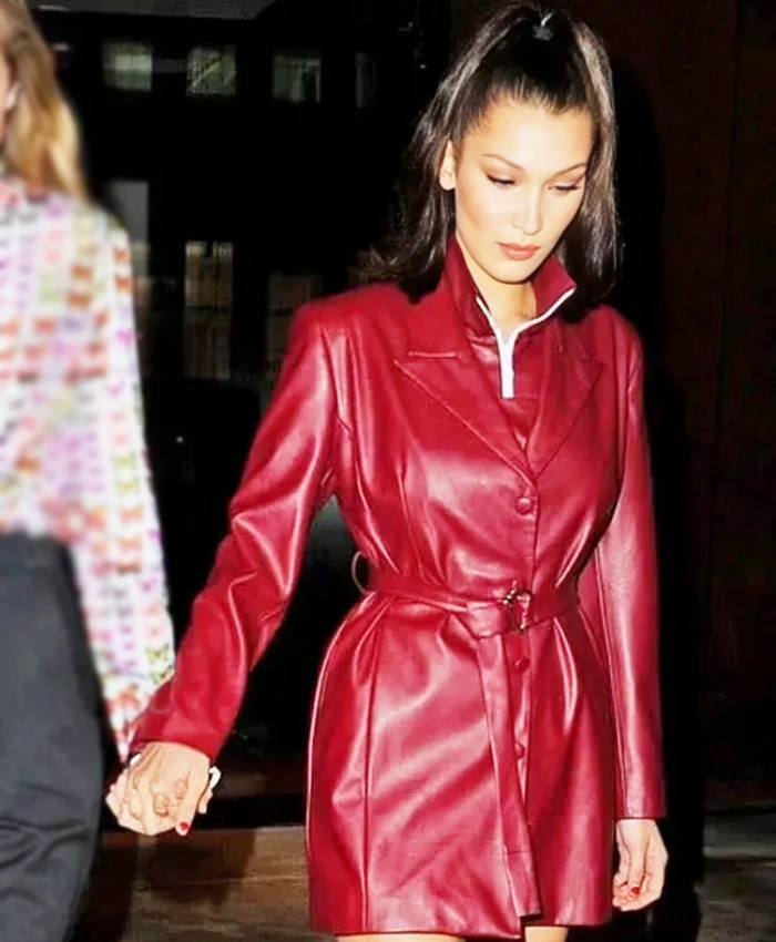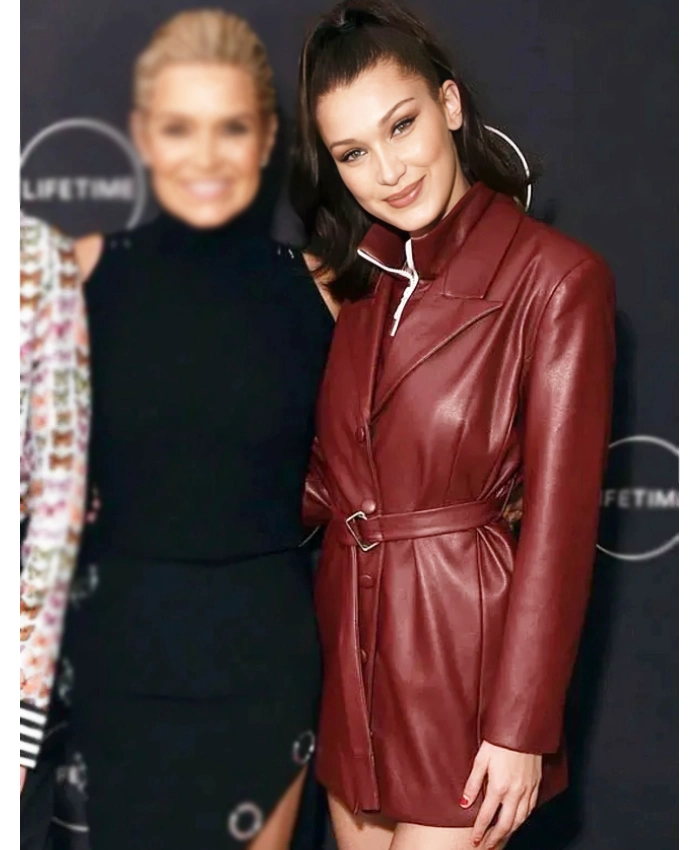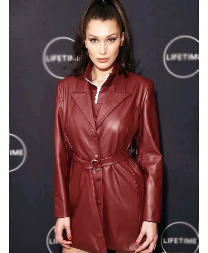Also, the long sleeves and carefully tailored cut make sure that you can move freely and not be limited. The two outer pockets and one inner pocket make it useful without ruining the clean, feminine shape. This New York City Bella Hadid Premiere Night Maroon Leather Jacket is a must-have for women who never settle for “either-or” because it can easily change to fit your style, whether you want to look confident or clean and neutral.