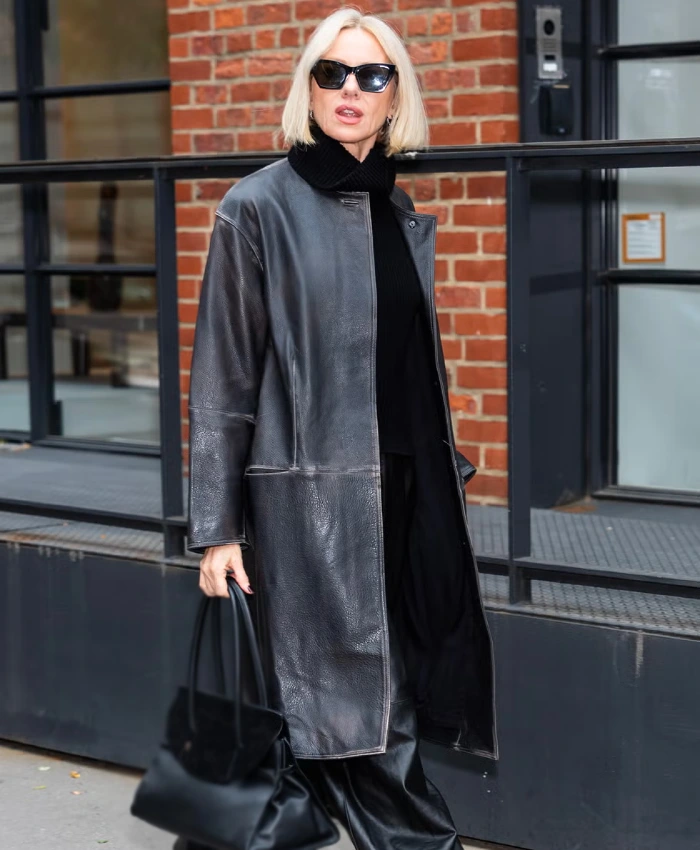 Enter into enduring elegance with a coat that embodies sophistication from every seam. Well, it is also crafted for women who appreciate beautiful outerwear. This piece seamlessly blends contemporaneity and classic tailoring. Also, the NYC Naomi Watts Leather Coat is inspired by Naomi Watts’ understated street style. In NYC, and is the ultimate statement piece for each changing season. Well, available here at Leather Jacket Black, this coat represents feminine empowerment, luxury, and urban aesthetic.