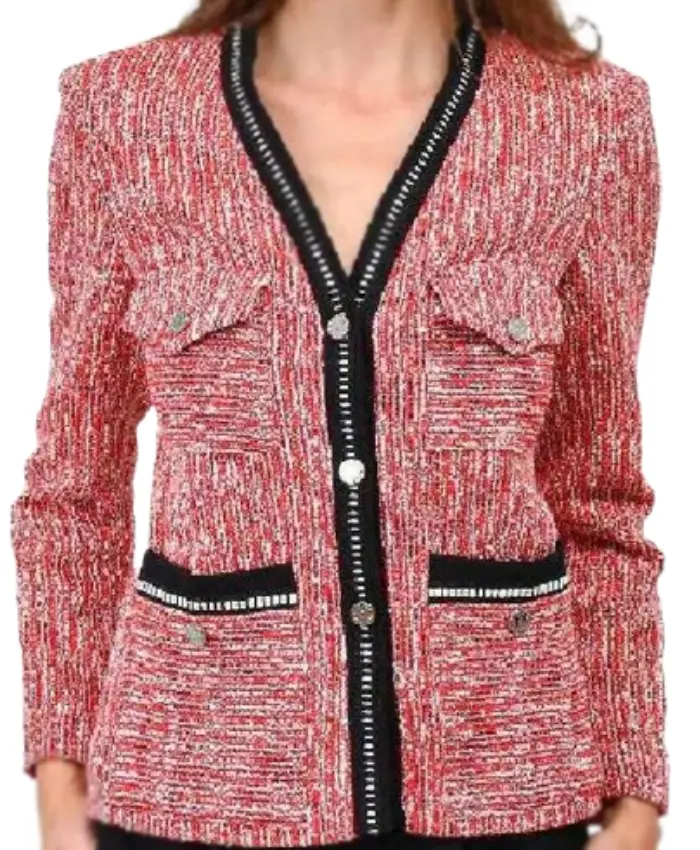 Celebrity Catchphrase S10 Olivia Attwood Red V-Neck Tweed Jacket