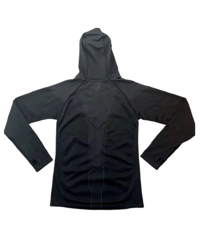 Are you an athlete who is always looking for performance-enhancing hooded sweatshirts? Or do performance fabric hooded sweatshirts appeal to you for fashion? In either of these scenarios, our Onyx V1 Black Hoodie with an attractive half-zipper closure is your best bet, which we have created from polyester! As a polyester hooded sweatshirt, it is moisture-wicking, perfect for intense physical activities, and is also durable.