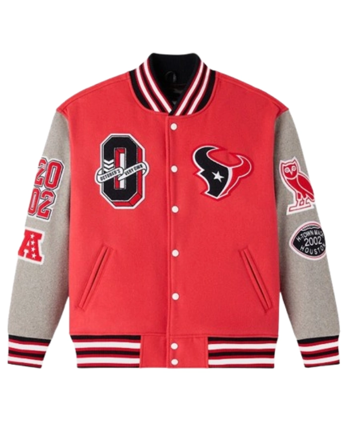 Houston Texans 2025 OVO Red and Grey Wool Varsity Jacket