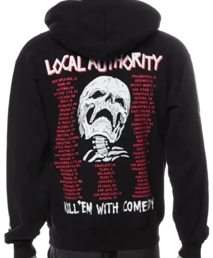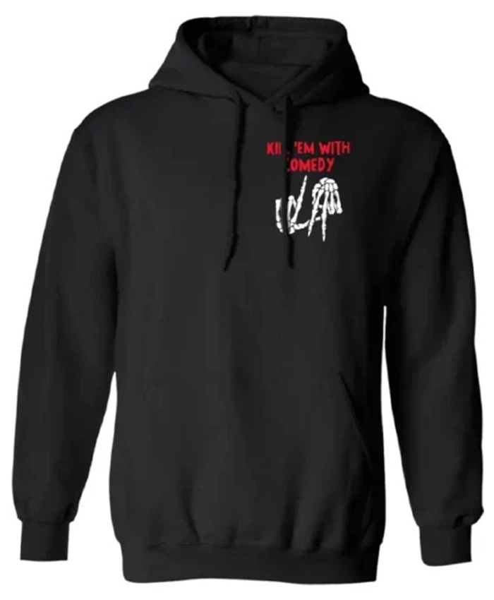 Many comedians have come and gone. But there is no one like Kevin Hart. From hiscamoes to his on-stage performances, his screen presence is supremely refined. Once he comes on, you cannot take your eyes off him. The charisma, the wit, the charm, no one matches his keen mind and hilarious comedy. But honestly, our favorites are the interviews he does with Dwayne The Rock Johnson. Pure goated humour. But that is not what we are here for. We are here for the Reality Check Kevin Hart Black Pullover Hoodie. This hoodie is the classic Kevin Hart-inspired piece because of the bold graphics and fun lettering. The “kill them with comedy” text offers the feel-good, fun vibes. The solid black backdrop adds the grunge effect. Especially when paired with the red and white illustrations, this hoodie is no regular cover-up, but it is a statement.