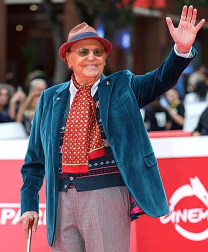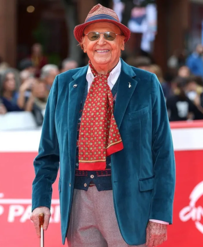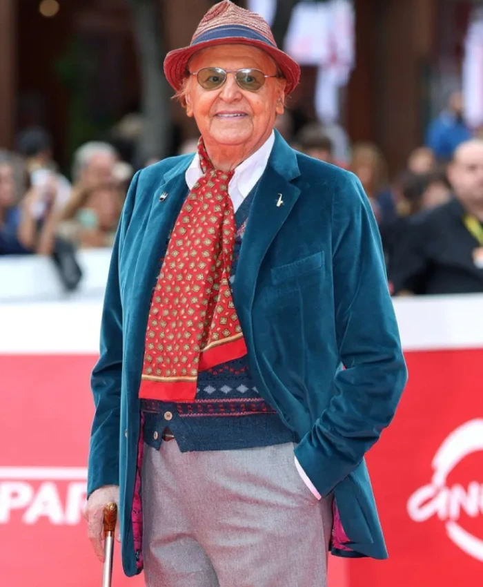 More interestingly, the inside, the smooth viscose lining ensures comfort and breathability. It allows you to carry yourself with ease at any event. The buttoned front closure creates a sharp and structured fit. But at the same time, the lapel-style collar elevates its traditional appeal. Also, featuring long sleeves with rounded cuffs and the design maintains a polished and contemporary look. The The 20th Rome Film Festival 2025 Renzo Arbore Blue Velvet Blazer stands out.