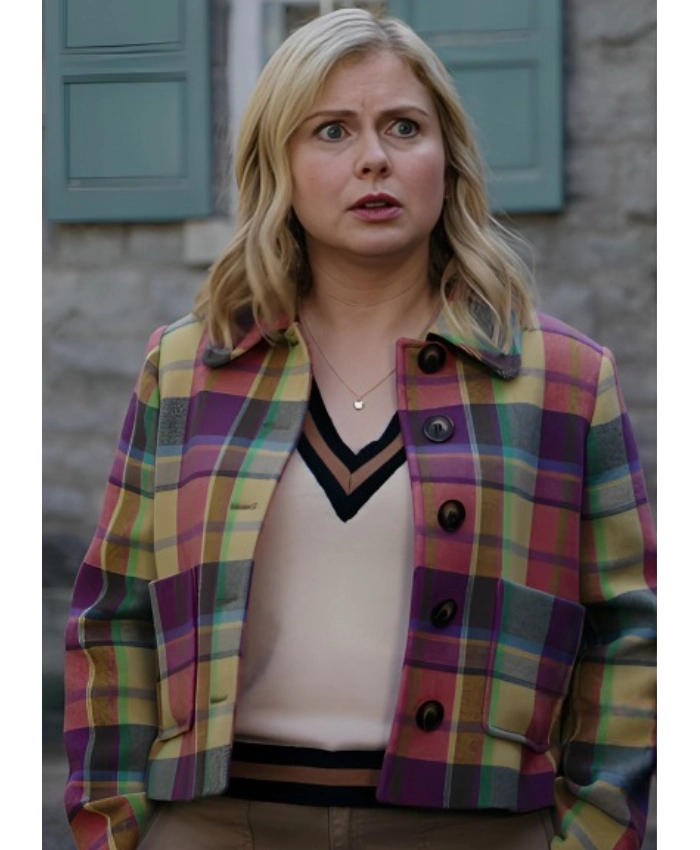 Furthermore, it is also inspired by Rose McIver as Sam (Samantha Arondekar) in the 2025 movie Ghosts US. This vibrant Sam TV-Series Ghosts US 2025 Rose McIver Multicolor Checkered Jacket from the Ghosts US Outfits Collection brings bold style and practical comfort together. Also, it is made of a soft but strong wool-blend fabric with a warm viscose lining. It keeps you warm and lets your personality shine through. Indeed, the shirt-style collar, button-front closure, and rounded cuffs give it a polished, tailored look. The two outside pockets make it easy to carry your essentials, which is great for busy event days.