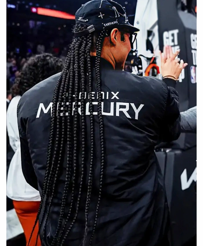 The jacket has a strong zipper closure that has been tested for smooth movement. And a steady grip, instead of decorative pieces that wear out quickly. The Basketball Player Satou Sabally Phoenix Mercury Black Bomber Jacket has a polyester outer layer and a soft viscose lining. This makes it well-structured without being too stiff. The full sleeves, ribbed cuffs, and ribbed hemline make sure everything stays in place. And the rib-knitted collar adds comfort that makes it easier to wear every day. This jacket has roomy two outer pockets and one inner pocket for safe storage. This makes it useful for both casual and active situations.