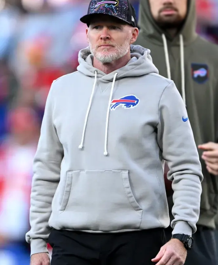 You might wake up on a day when you have a big game or event and realize. That your clothes don’t match the mood you want to be in. You don’t know what to do because you want to look casual or show your team spirit. That’s when the Sean McDermott Buffalo Bills Grey Hoodie from Leather Jacket Black. It also becomes the best choice because it combines comfort, style, and fan pride with ease. Moreover, this hoodie is made of soft fleece, which keeps you warm. While still letting air flow through. Also, it keeps you comfortable whether you’re cheering outside or going to an indoor event.
