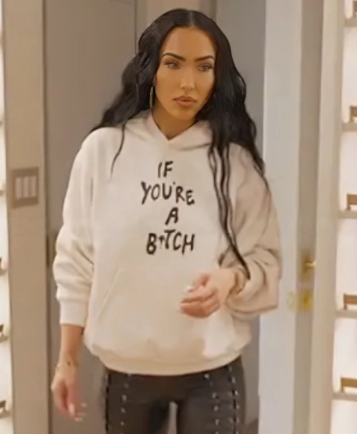 Inspired by Bre Tiesi’s fearless personality, the Selling Sunset Bre Tiesi “IF YOU’RE A BITCH” Print Hoodie and the Bre Tiesi “I’LL BE A C’nT” Print Creme Pullover Hoodie showcase her iconic attitude through bold front and back designs. The front pouch pocket adds practicality while maintaining a sleek design. So, if you’re running errands or lounging in style. This Bre Tiesi “I”LL BE A C’nT” Print Creme Pullover Hoodie keeps your look elevated and expressive. Well, discover this standout piece only at Leather Jacket Black. Where confidence meets comfort and style speaks for itself.
