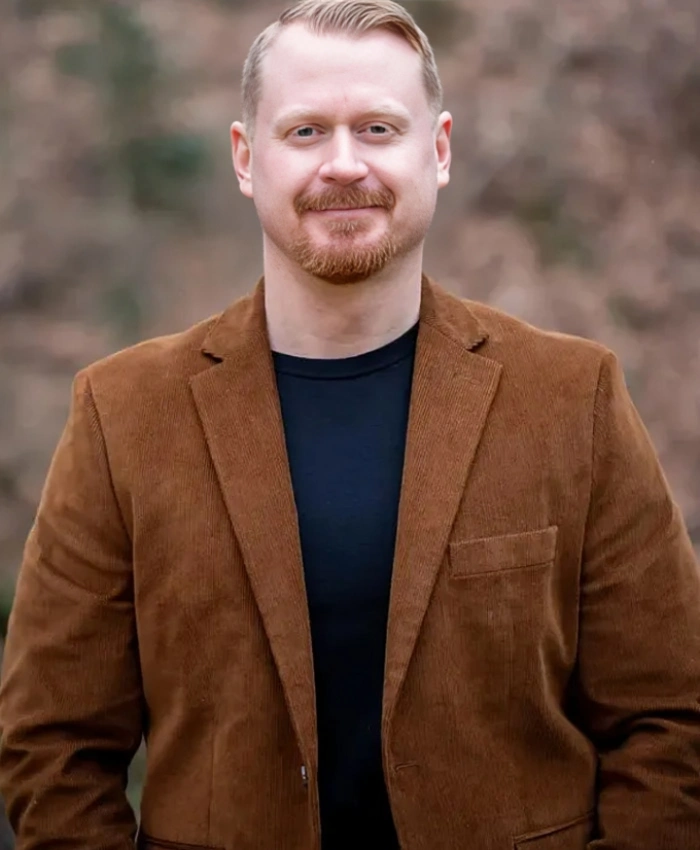 Eric Swithin Show Me Your Glory Movie 2025 Brown Corduroy Blazer