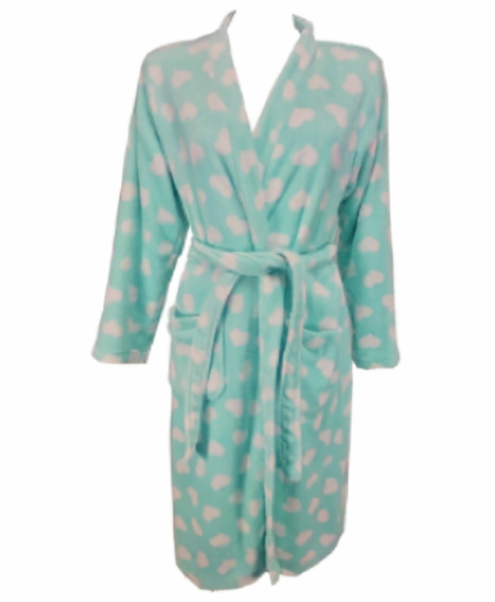 On top of that, this Clare Grogan Skins S06 Shelley McGuinness Vintage Little Hearts Robe – Aqua is tailored from premium terry fabric, this robe ensures a soft touch and breathable feel against the skin. The shawl lapel-style collar flows gracefully into an open front with a knot closure. It also allows effortless wear with a hint of elegance. Likewise, its long sleeves match beautifully with the rounded buttoned cuffs. Giving the robe a refined and snug fit. The soothing aqua color enhances its calming appeal. While the heart printed designs add a lovely touch of playfulness.
