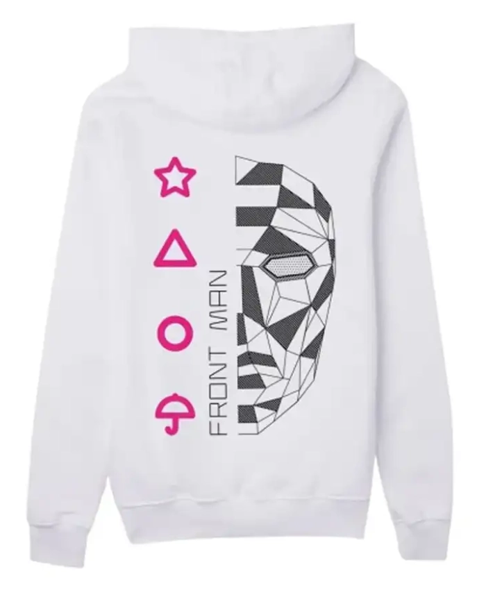 The Front Man from Squid Game stands for mystery, power, and a lasting visual impact. Well, that effect is clear in the Squid Game Front Man White Hoodie. Which is still relevant even after the show has been over for a while. A lot of people who want to buy character-inspired clothes are unsure if they will still be worth something in the future. But this hoodie is worth the money because it combines pop culture with everyday usefulness. In the Squid Game Outfit Collection.