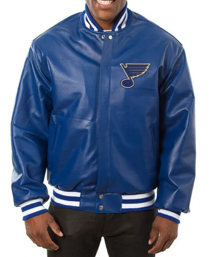 St. Louis Blues Royal Blue Leather Varsity Jacket