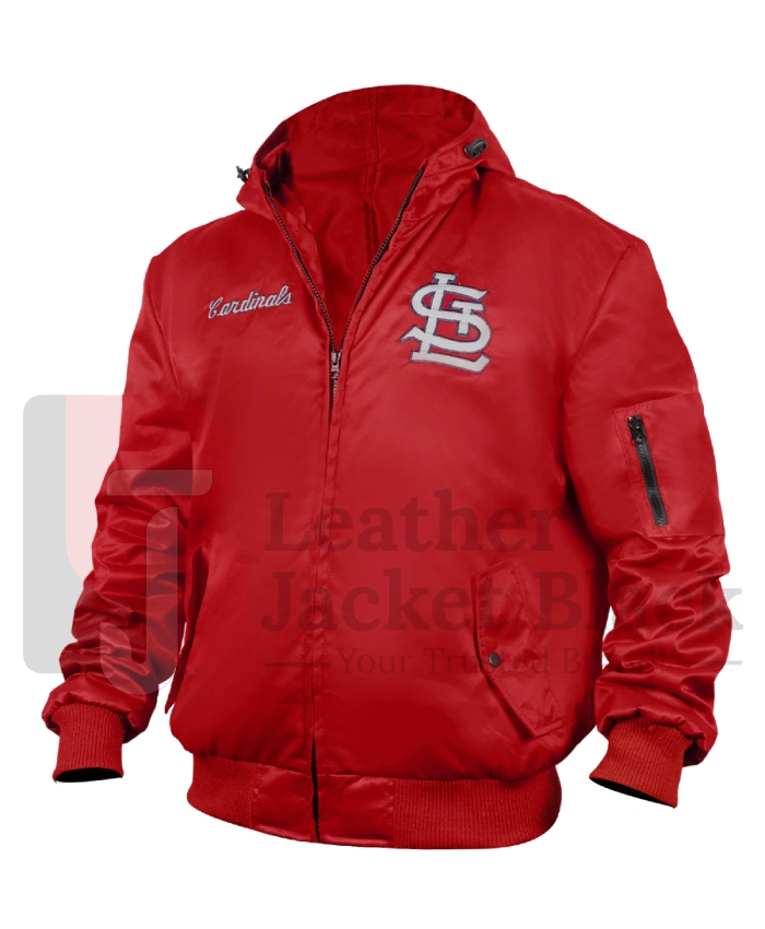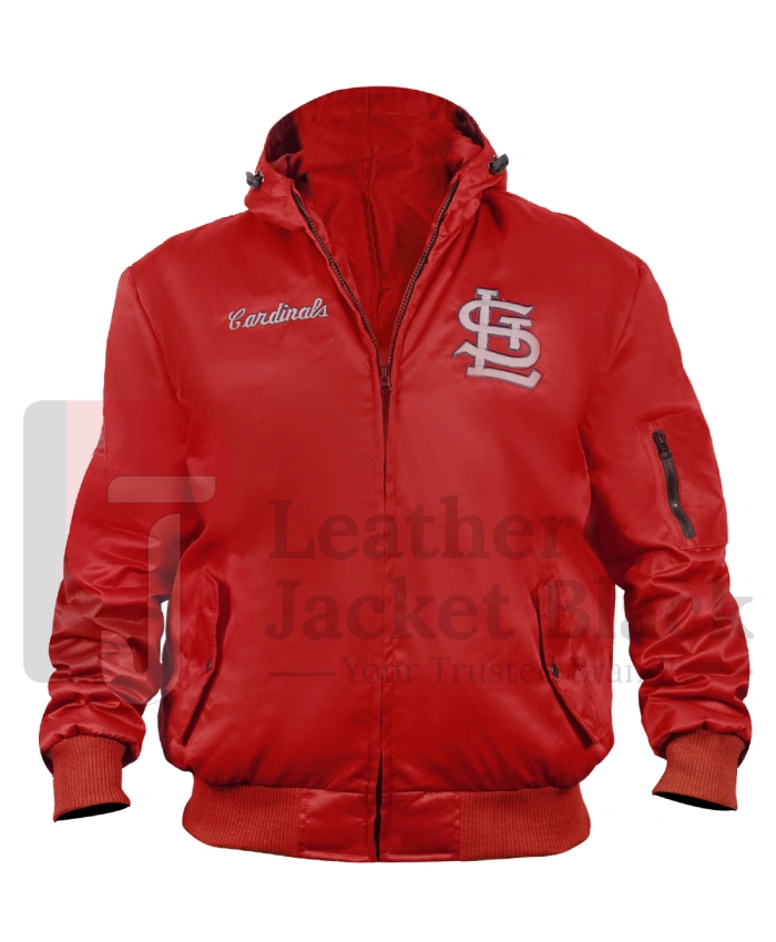 Leather Jacket Black offers an excellent jacket that combines a sporty appeal with iconic streetwear style. This St. Louis Cardinals Historic L-2B Hooded Bomber Jacket is created of top-quality satin fabric, which is lightweight and soft ideal for cool but breezy weather. Moreover, the inner viscose lining adds comfort. And making it perfect for wearing during outdoor activities. Also, casual hangouts, or even game nights. Designed for both men and women. This Historic L-2B St. Louis Cardinals Red Hooded Bomber Jacket – Unisex style radiates boldness.