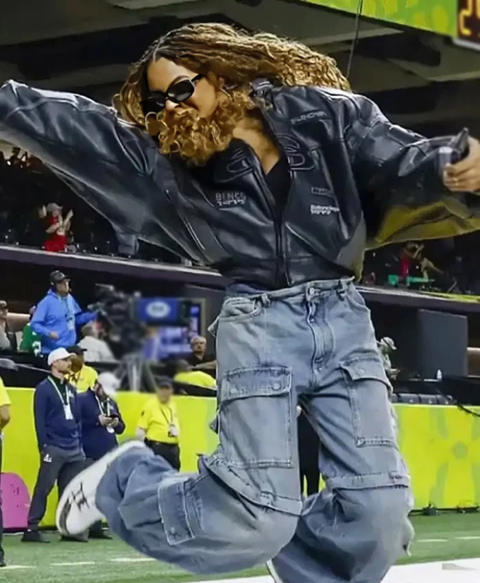 Beyoncé Super Bowl LIX Halftime Show 2025 Oversized Back Leather Jacket