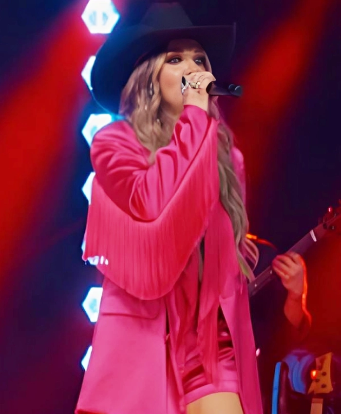 The TV-Series The Road S01 Britnee Kellogg Pink Satin Fringed Blazer is made to fit well and allow for easy movement. Making it great for both casual and formal settings. The satin texture reflects light beautifully, and the fringed details give it a modern, trendy look. This blazer makes any outfit look better, whether you wear it with jeans during the day or over a sleek dress at night.