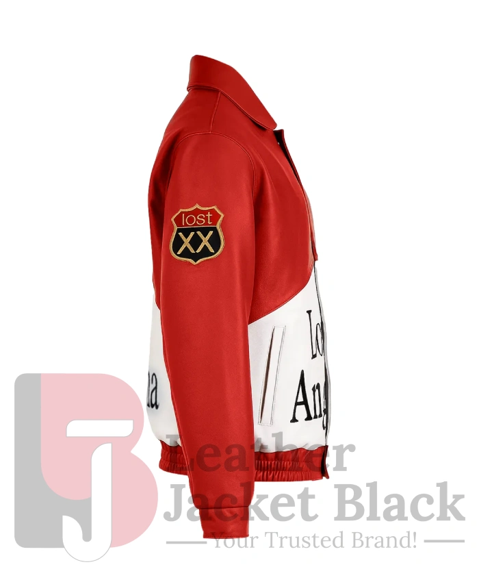 Buy Now The Tonight Show MGK Lost Americana Red And White Leather Jacket For Men And Women