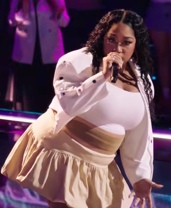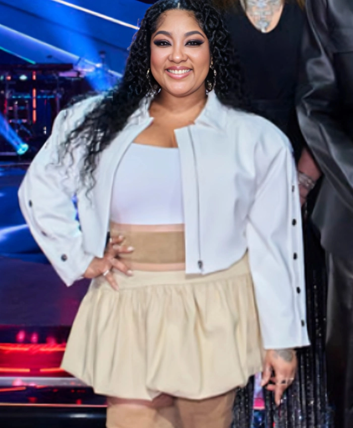 The TV-Show The Voice S28 Yoshihanaa Zip-Front Snap-Arm White Cropped Jacket keeps its shape even after being used many times because it is made of high-quality fabric and has a strong viscose lining. The turn-down collar gives the shirt a clean, balanced shape that stays sharp all day instead of getting wrinkled or falling apart. You can look stylish without worrying that the hardware or fabric will wear out too quickly because the cropped silhouette gives it a modern touch. The Voice TV-Series Outfits Collection is known for designs like this: bold but with a purpose.