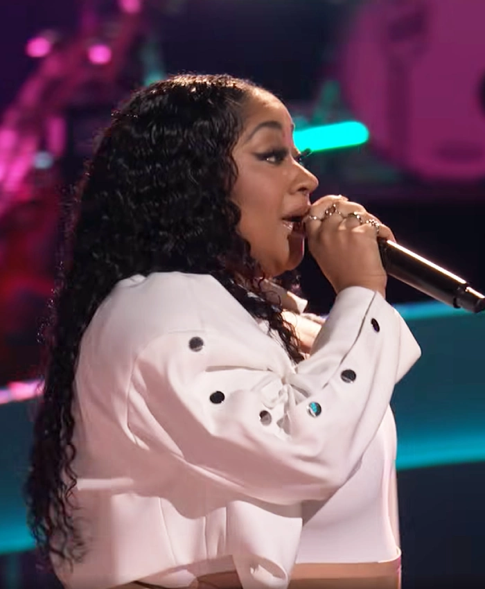 TV-Show The Voice S28 Yoshihanaa Zip-Front Snap-Arm White Cropped Jacket