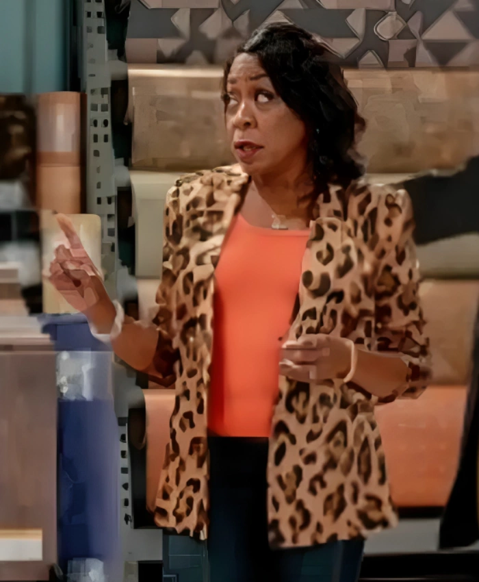 Every element showcases precision; the long sleeves flow seamlessly into rounded cuffs. It also looks a polished, couture finish. Meanwhile, two outside and one inside pocket offer practicality. While maintaining its tailored charm. Along with that, triking the perfect balance between wild and refined. The Tichina Arnold Crutch 2025 Leopard Blazer is more than outerwear. It’s a statement of empowerment and is designed for women who dare to stand out.