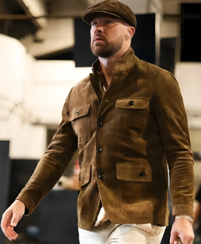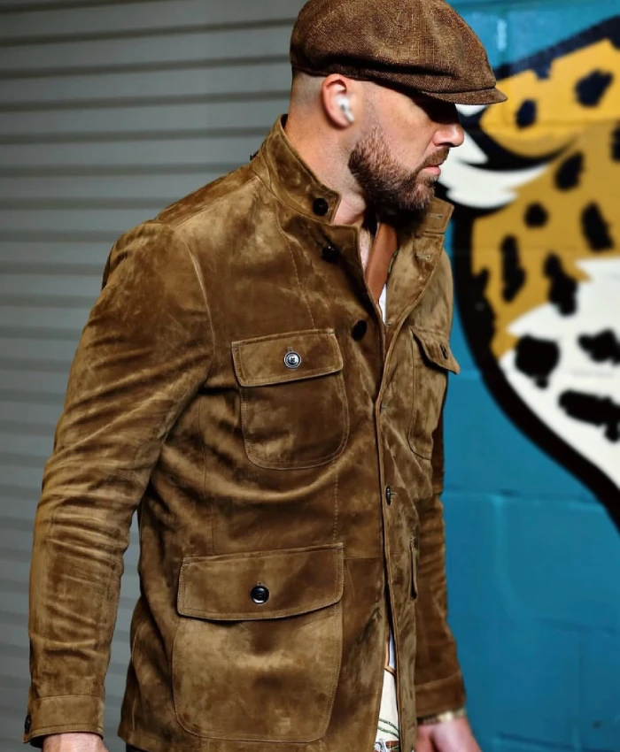 Travis Kelce Flap Pockets Brown Military Suede Jacket
