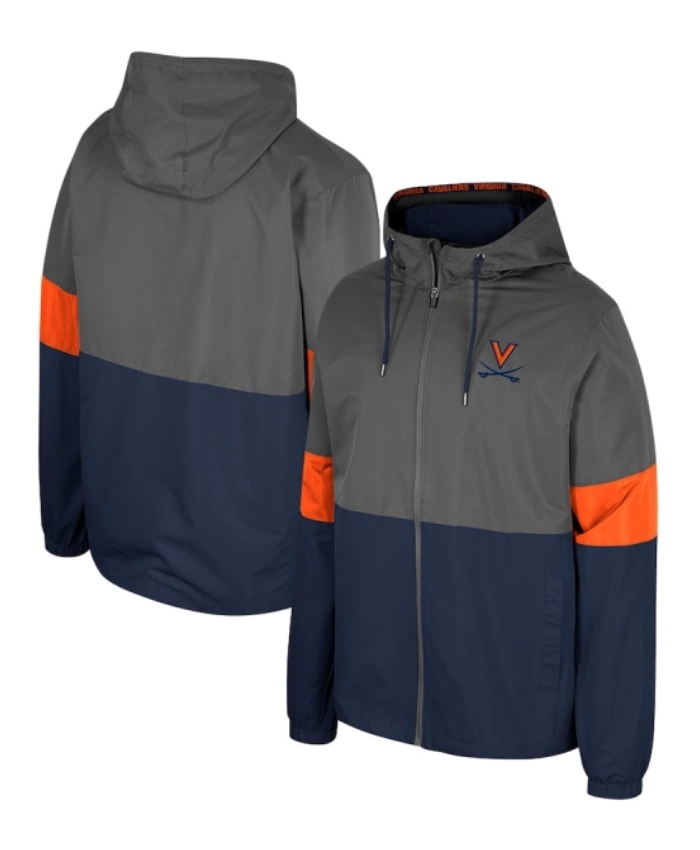 Men’s NCAA Basketball Team Virginia Cavaliers Blue and Gray Full-Zip Jacket