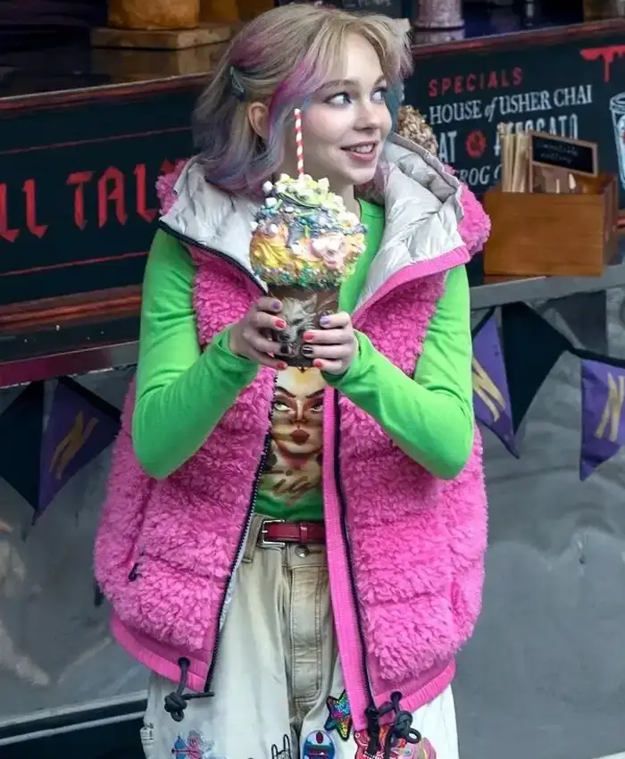 Wednesday S02 Emma Myers Pink Sherpa Vest