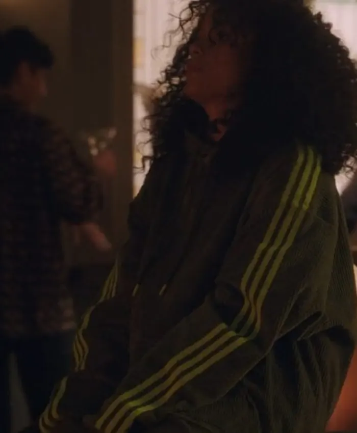 The Canadian actress Whitney Peak is now famous for her role as Zoya Lott in the popular HBO Max revival of Gossip Girl. She is a force of attraction with her styles and outfits so lively and showing off her individuality that she maintains her presence unconventionally. Her Whitney Peak Gossip Girl S02 Green Striped Sleeve Hoodie made its way directly to the collection of gossip girl outfits. This striped hoodie is manufactured with top-notch quality fleece, a soft, warm fabric with a texture similar to sheep’s wool, used as a lining material for the outer shell of the hoodie, and the viscose layering inside will make you feel gentle and delicate while saving the heat from escape.