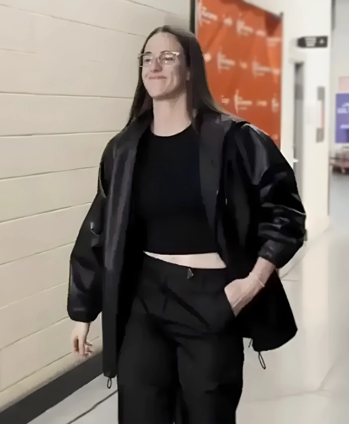 WNBA Playoffs Semifinal 2025 Caitlin Clark Black Leather Jacket