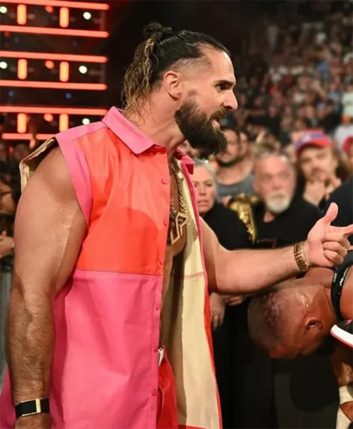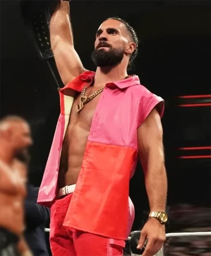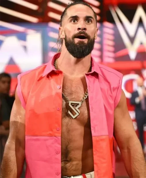 Buy Now WWE Monday Night RAW 2025 Seth Rollins Pink And Red Leather Vest For Unisex